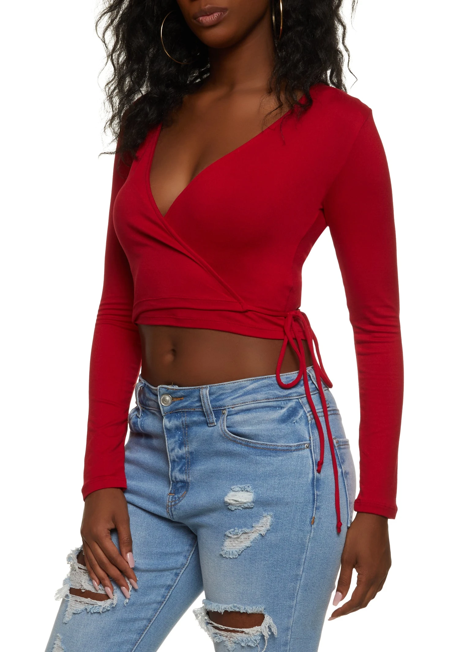 Soft Knit Side Tie Cropped Wrap Top – RED