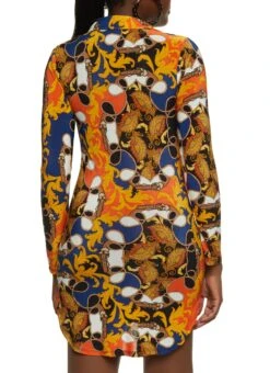Baroque Mixed Print Shirt Dress – ORANGE
