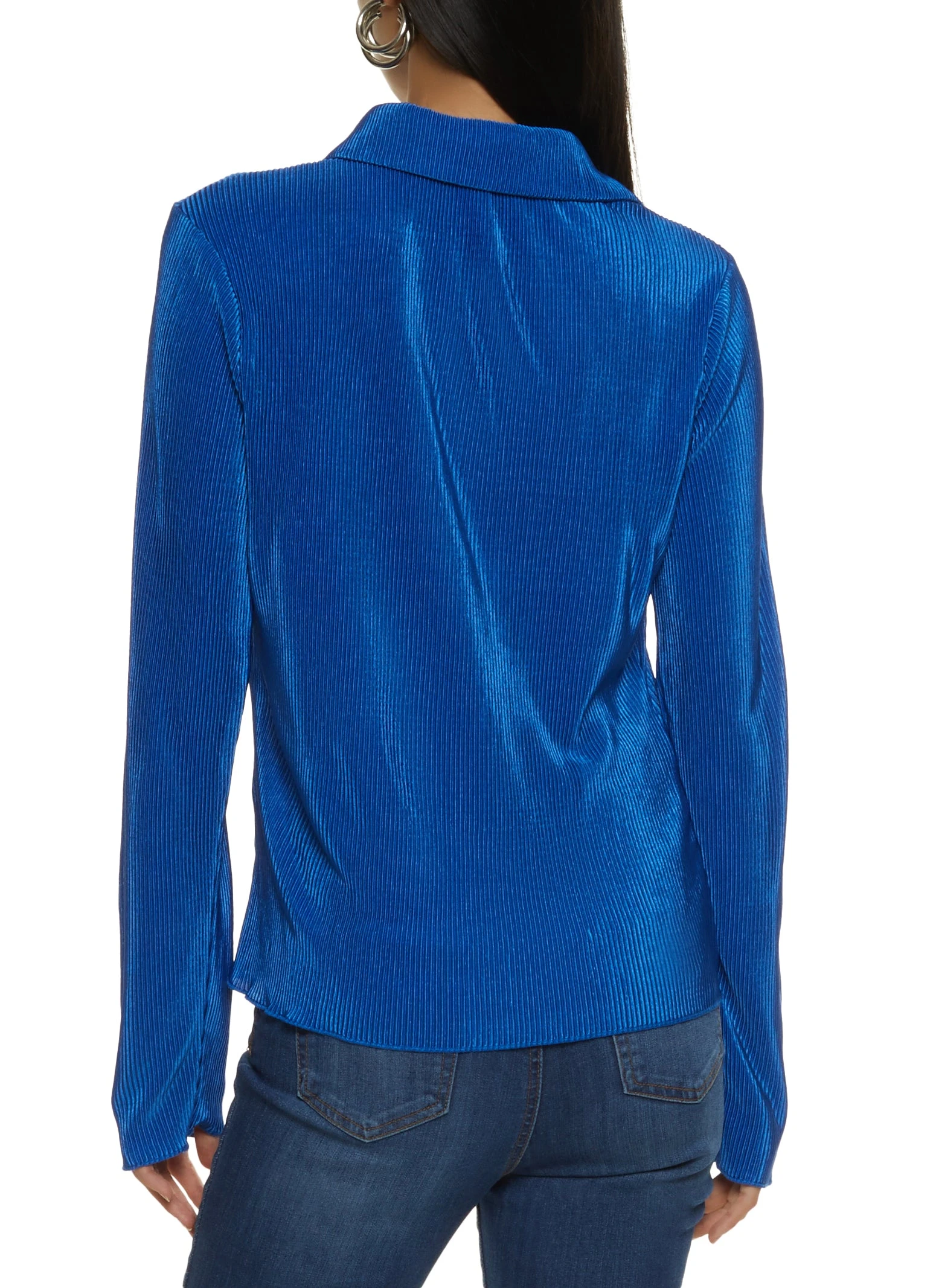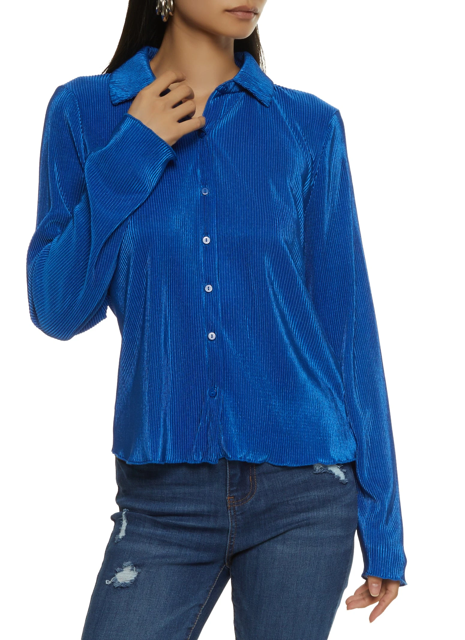 Basic Plisse Button Front Shirt – ROYAL BLUE