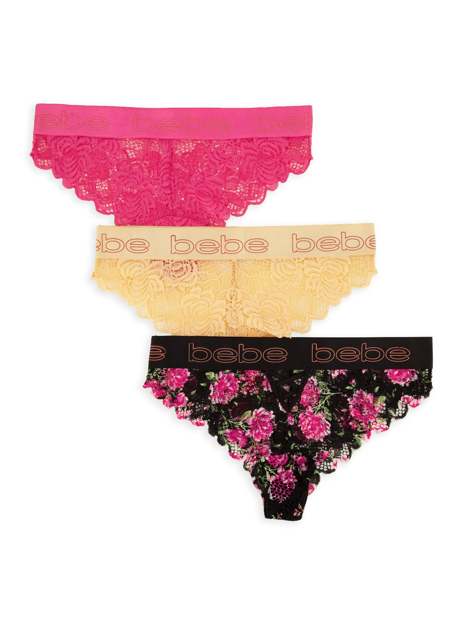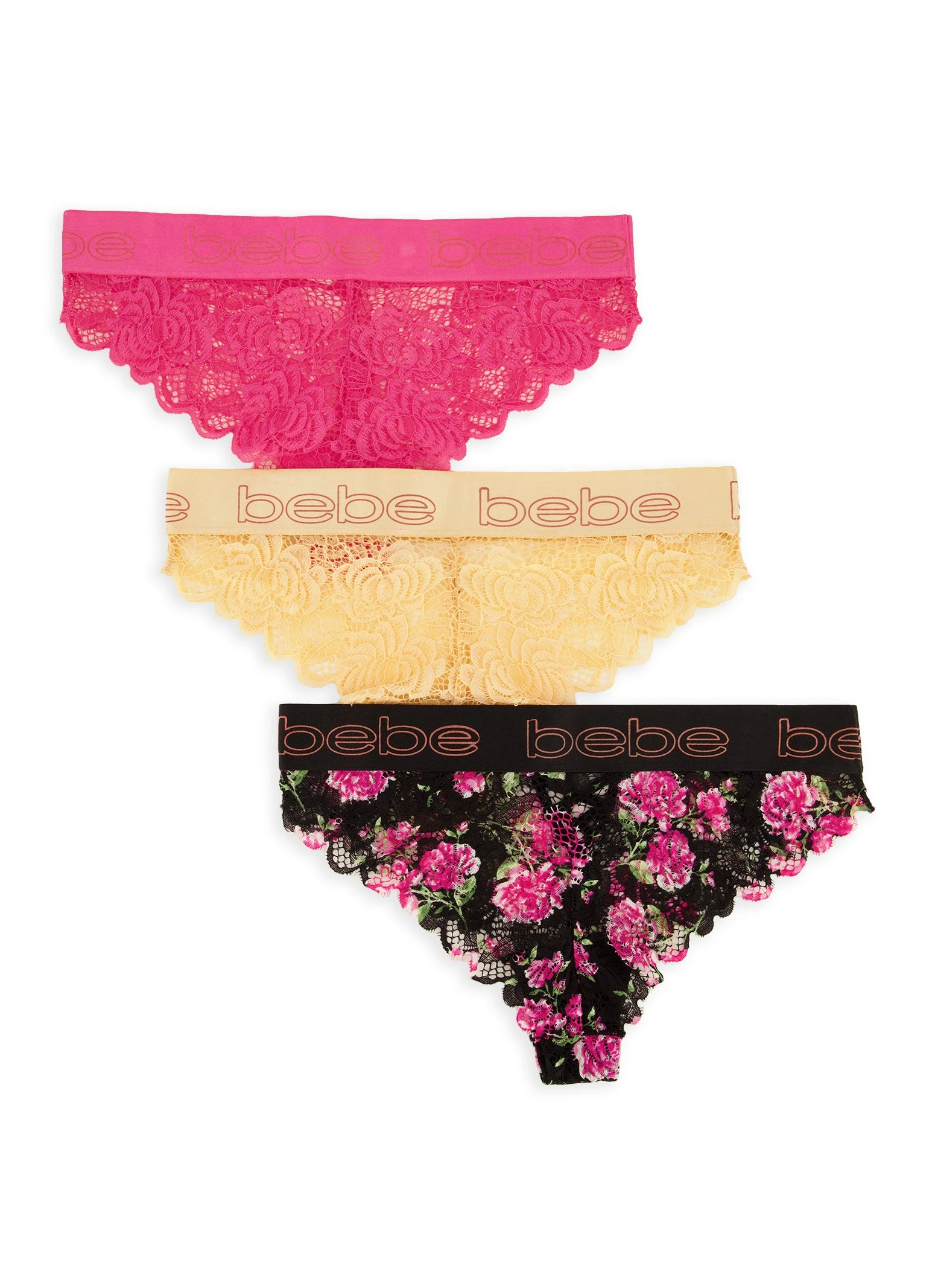 Bebe 3 Pack Floral Lace Panties – BLACK