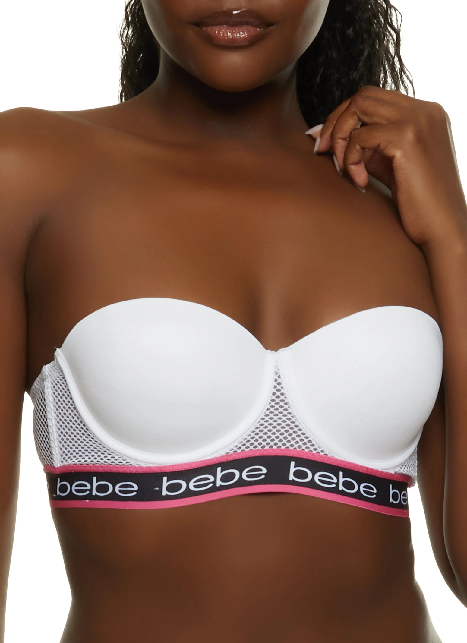 Bebe Fishnet Detail Balconette Bra | Converts to Strapless – WHITE