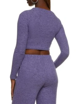 Brushed Knit Crew Neck Crop Top – LAVENDER