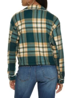 Brushed Knit Sherpa Lined Cropped Shacket – GREEN