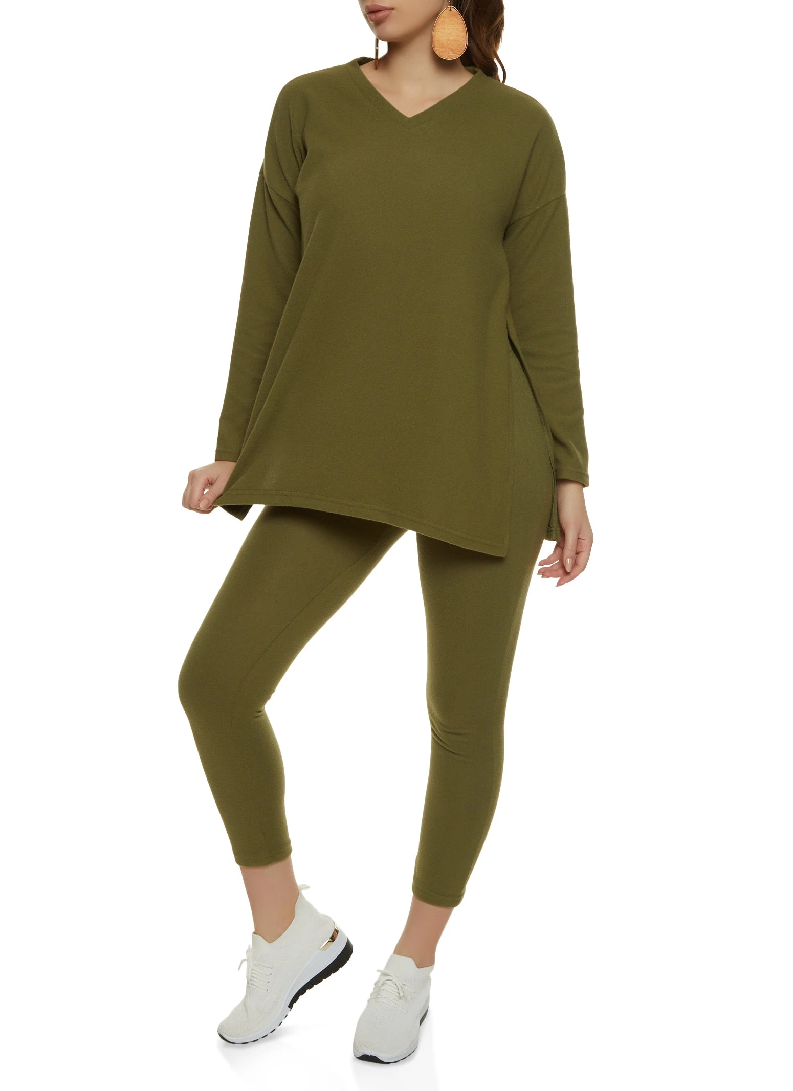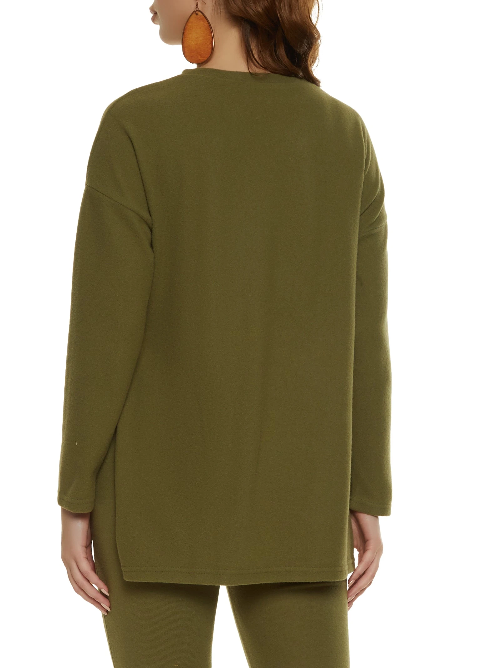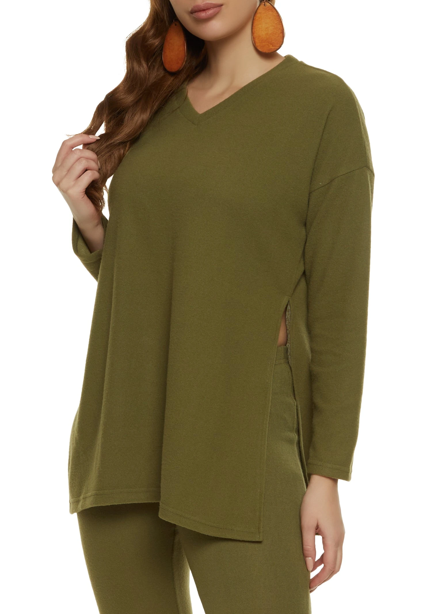 Brushed Knit Side Slit Tunic Top – OLIVE
