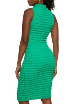 Bubble Knit Mock Neck Midi Dress – GREEN