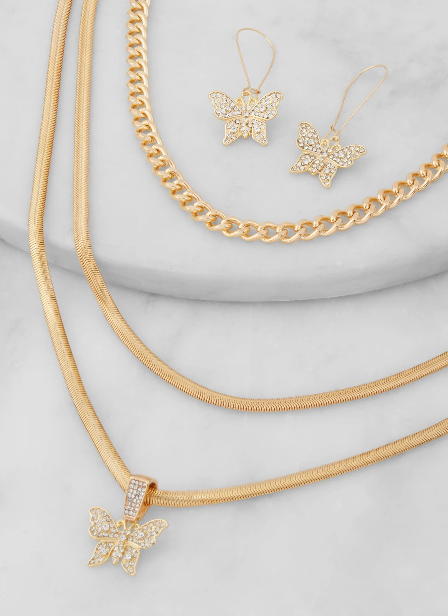 Butterfly Curb Chain Layered Necklace and Drop Earrings – GOLD
