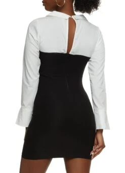 Button Back Keyhole Knit Shirt Dress – BLACK