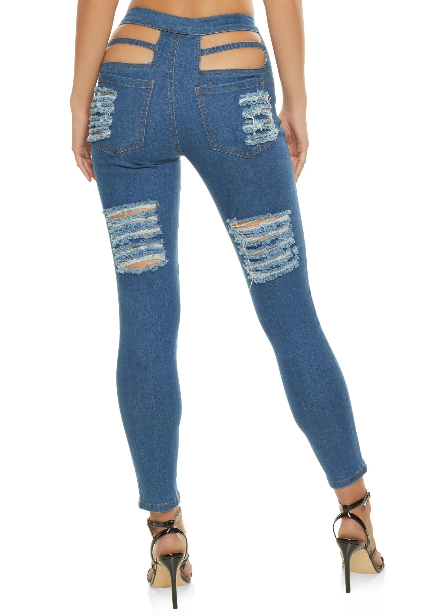 Caged Cut Out Distressed Skinny Jeans – MEDIUM WASH