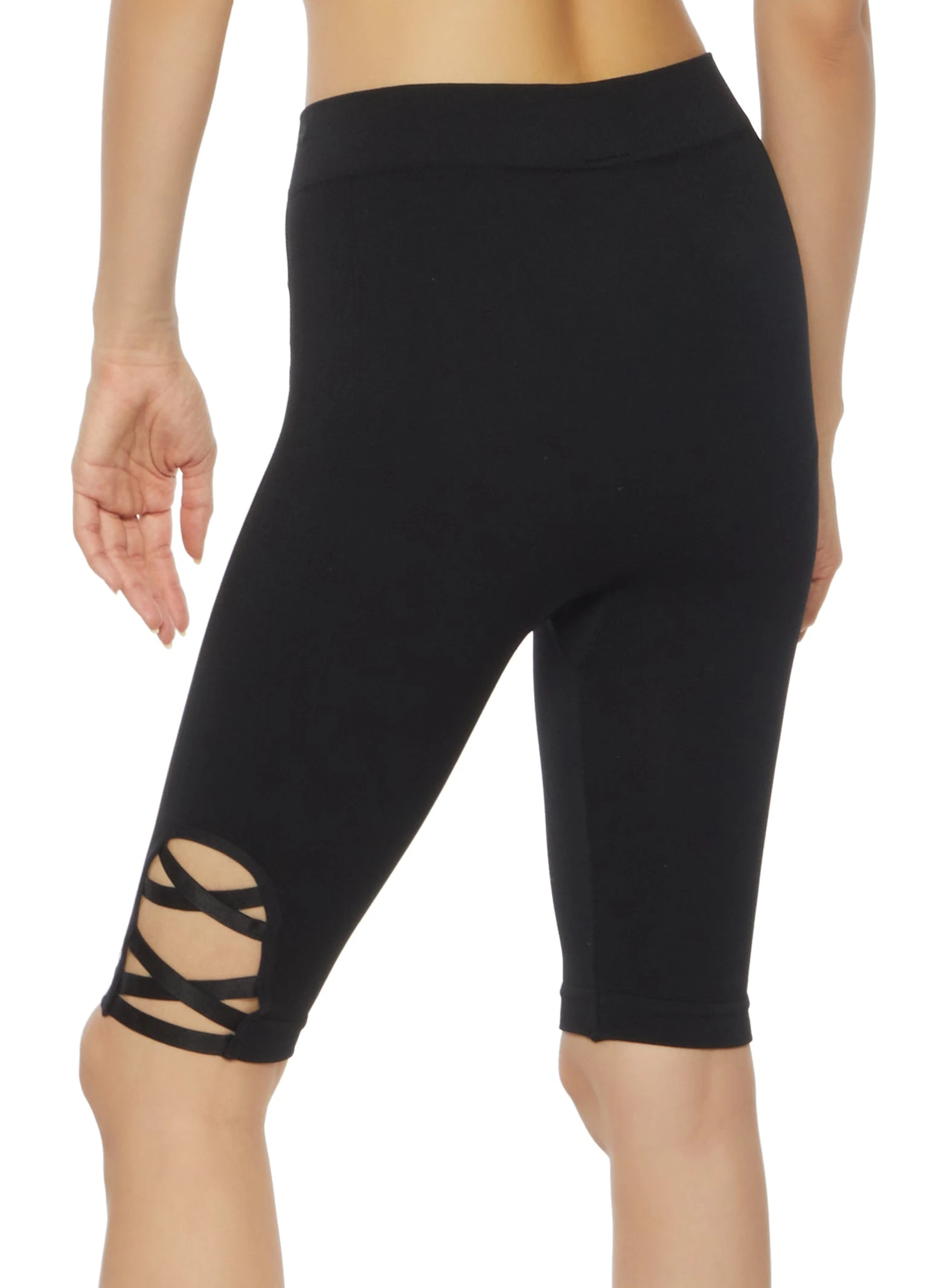 Caged Detail Biker Shorts – BLACK