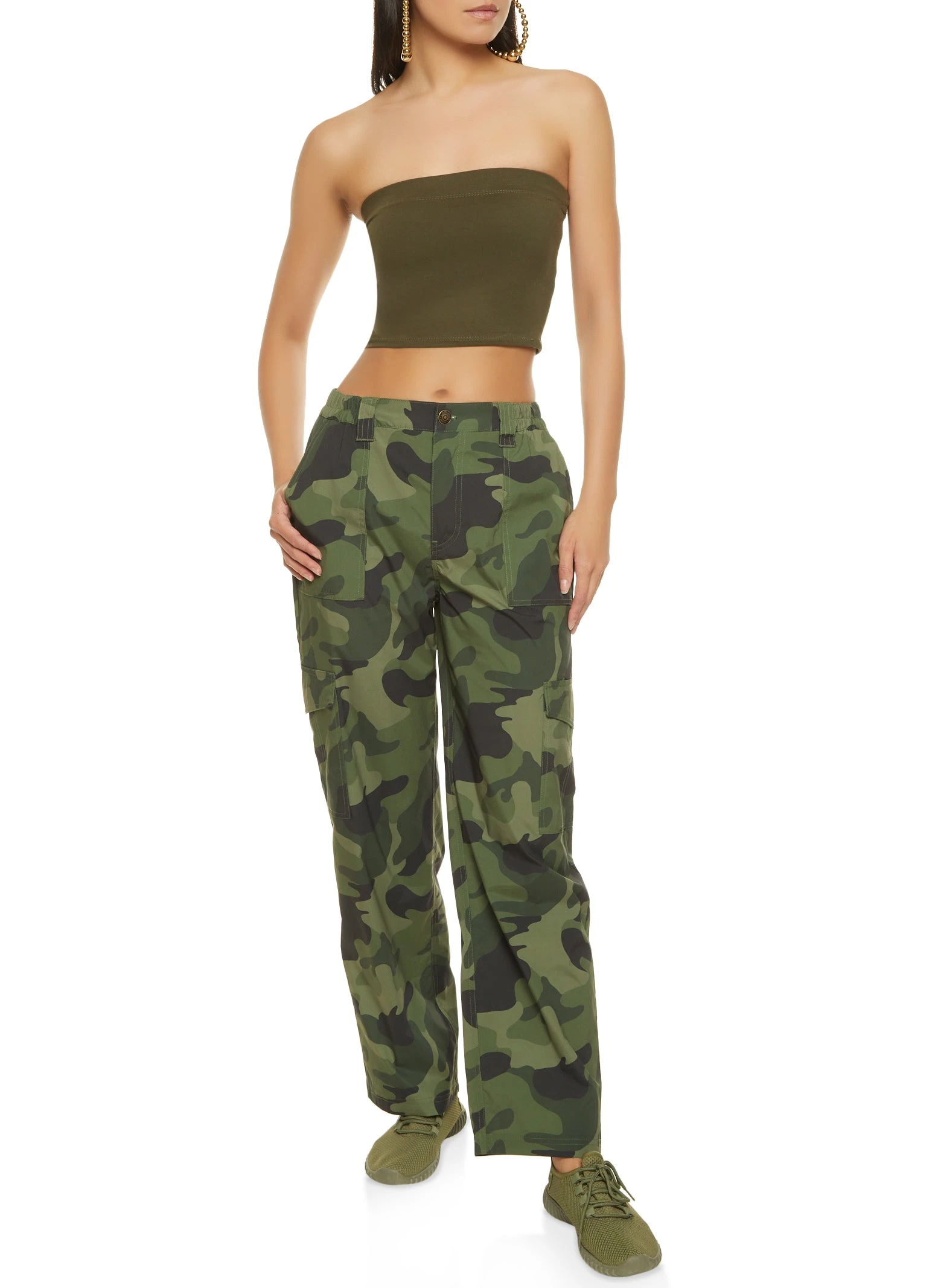 Camo Wide Leg Cargo Pants – OLIVE