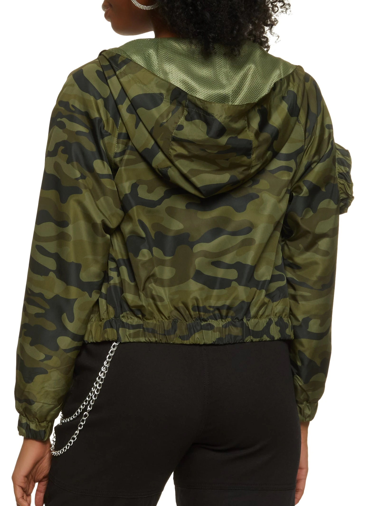 Camo Zip Front Hooded Windbreaker Jacket – OLIVE