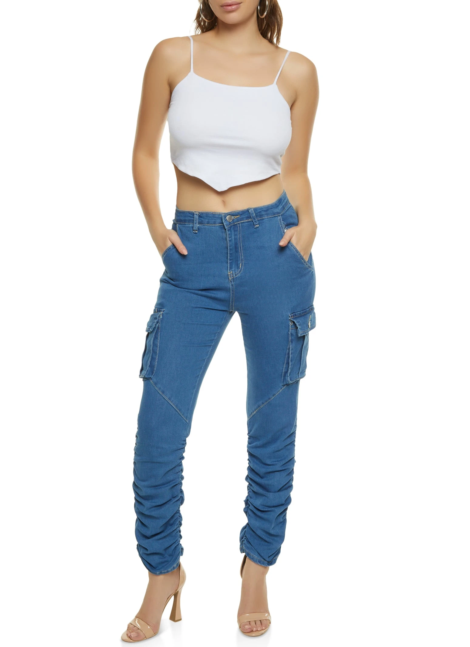 Cargo Pocket Ruched Skinny Jeans – MEDIUM WASH