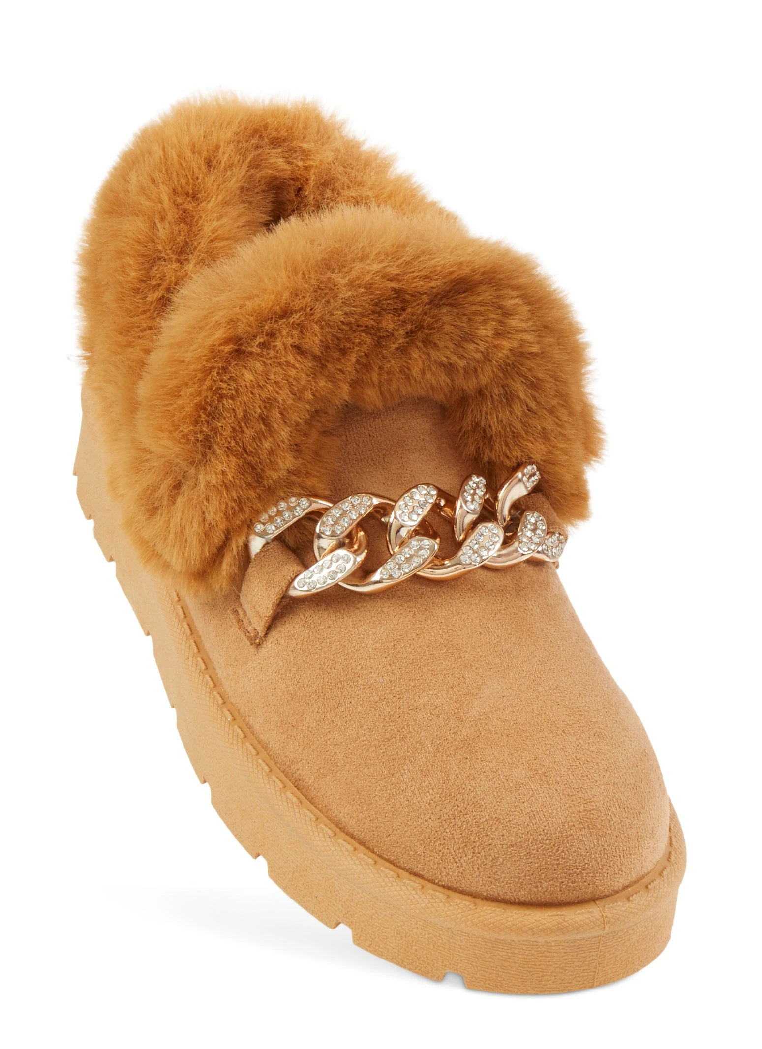 Chain Detail Faux Fur Lined Boots – TAN S