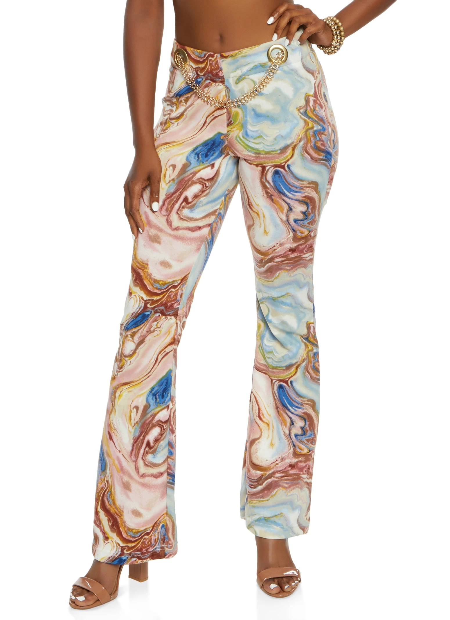 Chain Detail Marble Print Pants – BLUSH