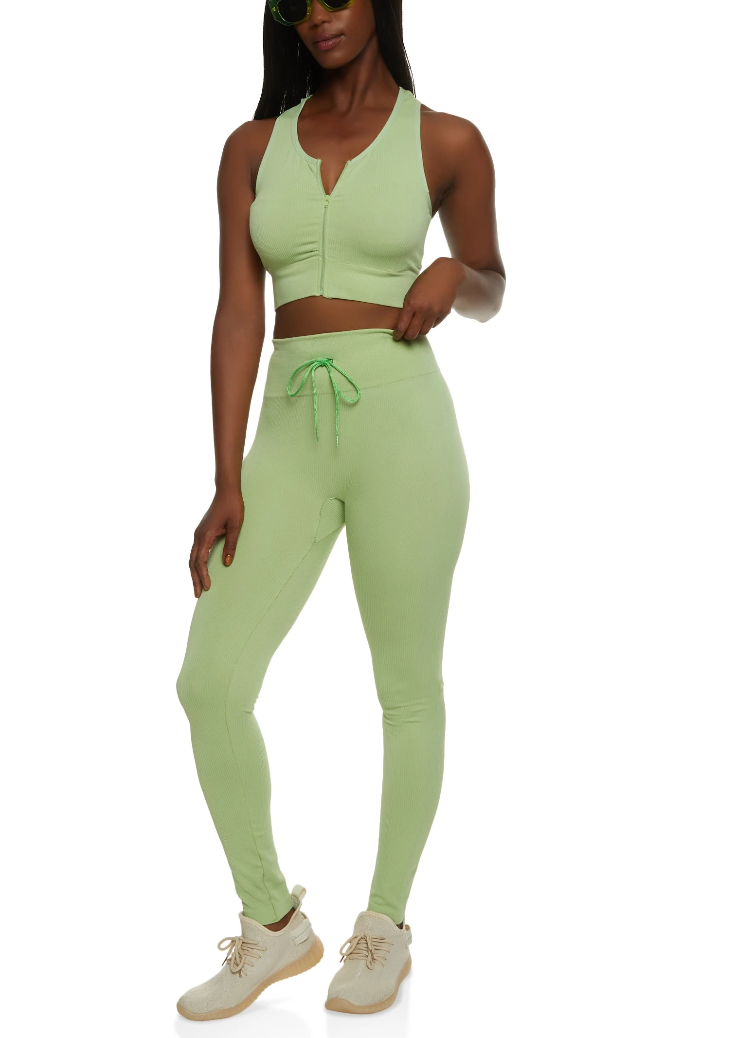 Compression Rib Zip Front Racerback Tank Top – LIME