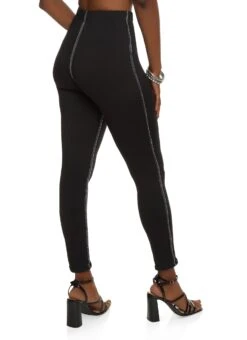 Contrast Stitch High Waisted Leggings – BLACK