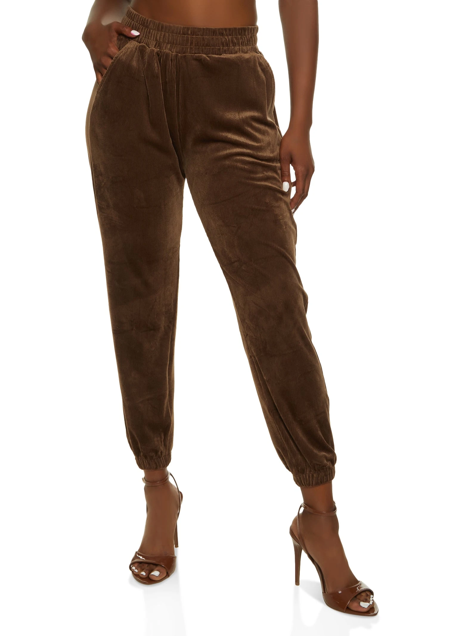 Corduroy High Waisted Joggers – BROWN