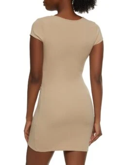 Crepe Knit O Ring Keyhole Wrap Dress – TAN
