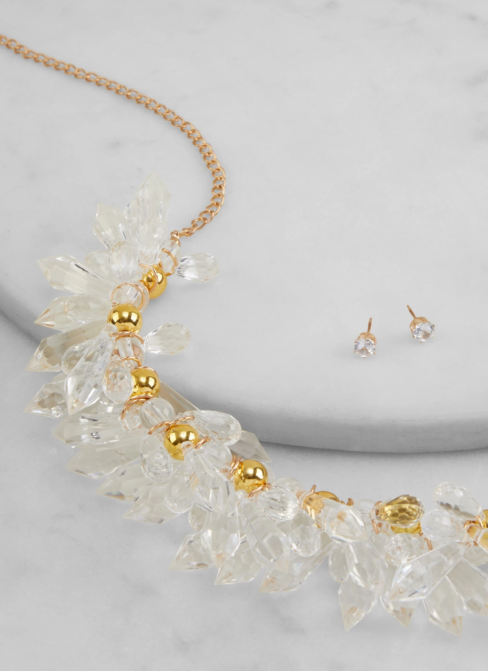 Dangle Crystal Beaded Necklace and Stud Earrings – CLEAR