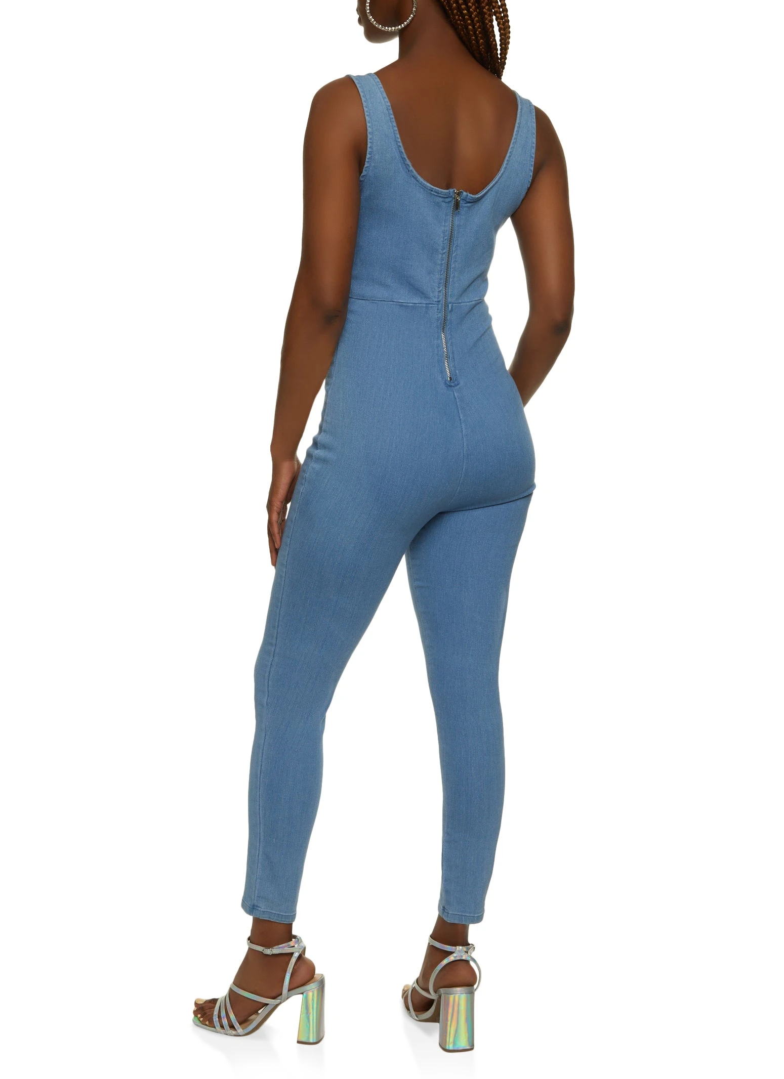 Denim Hook and Eye Sleeveless Jumpsuit – MEDIUM WASH