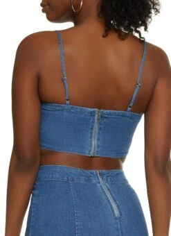 Denim Lace Up Garter Strap Bustier Top – MEDIUM WASH
