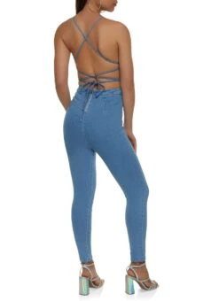 Denim Lace Up Open Back Jumpsuit – MEDIUM WASH