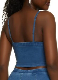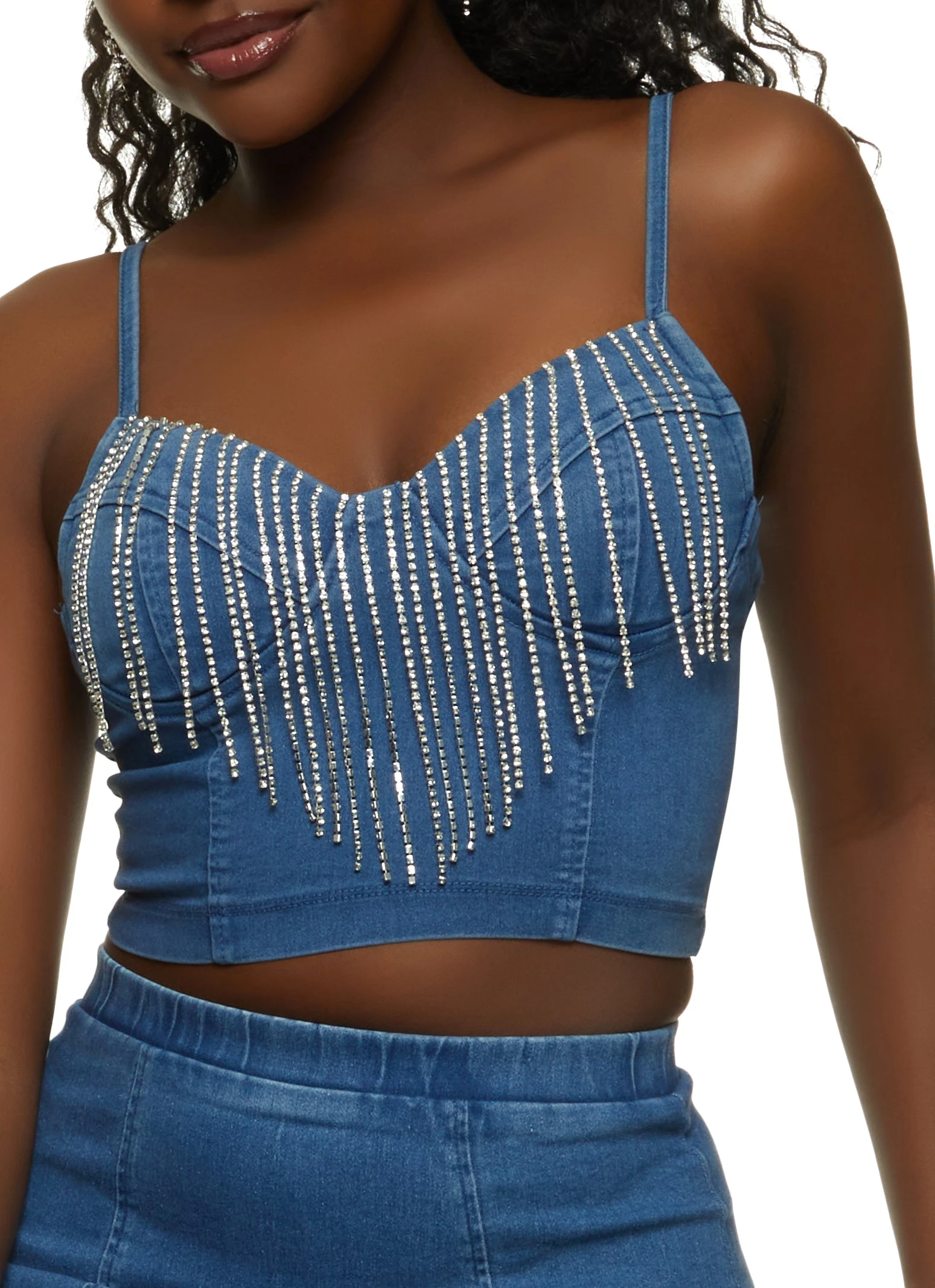 Denim Rhinestone Fringe Bustier Top – MEDIUM WASH