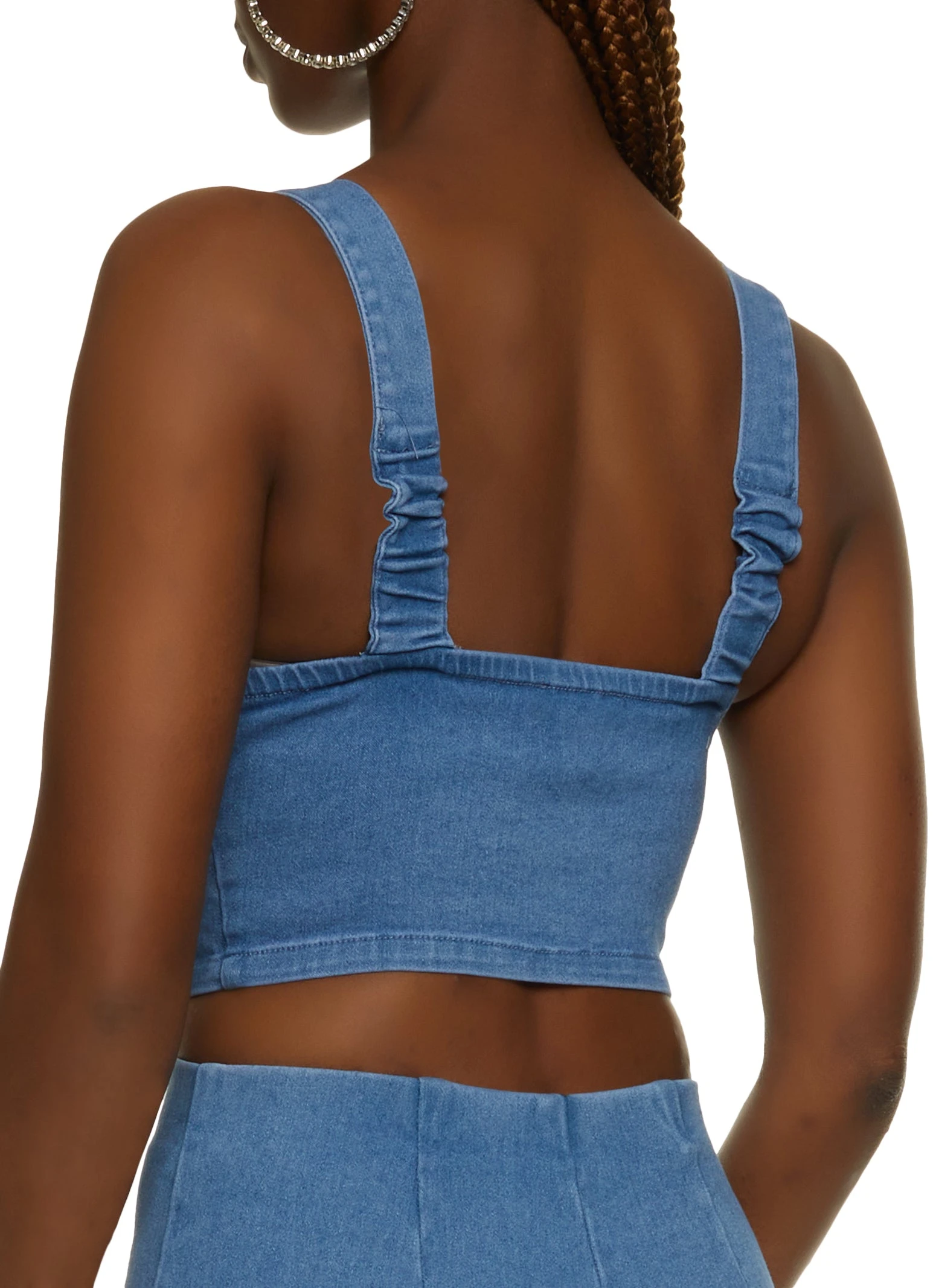 Denim Zip Up Bustier Top – MEDIUM WASH