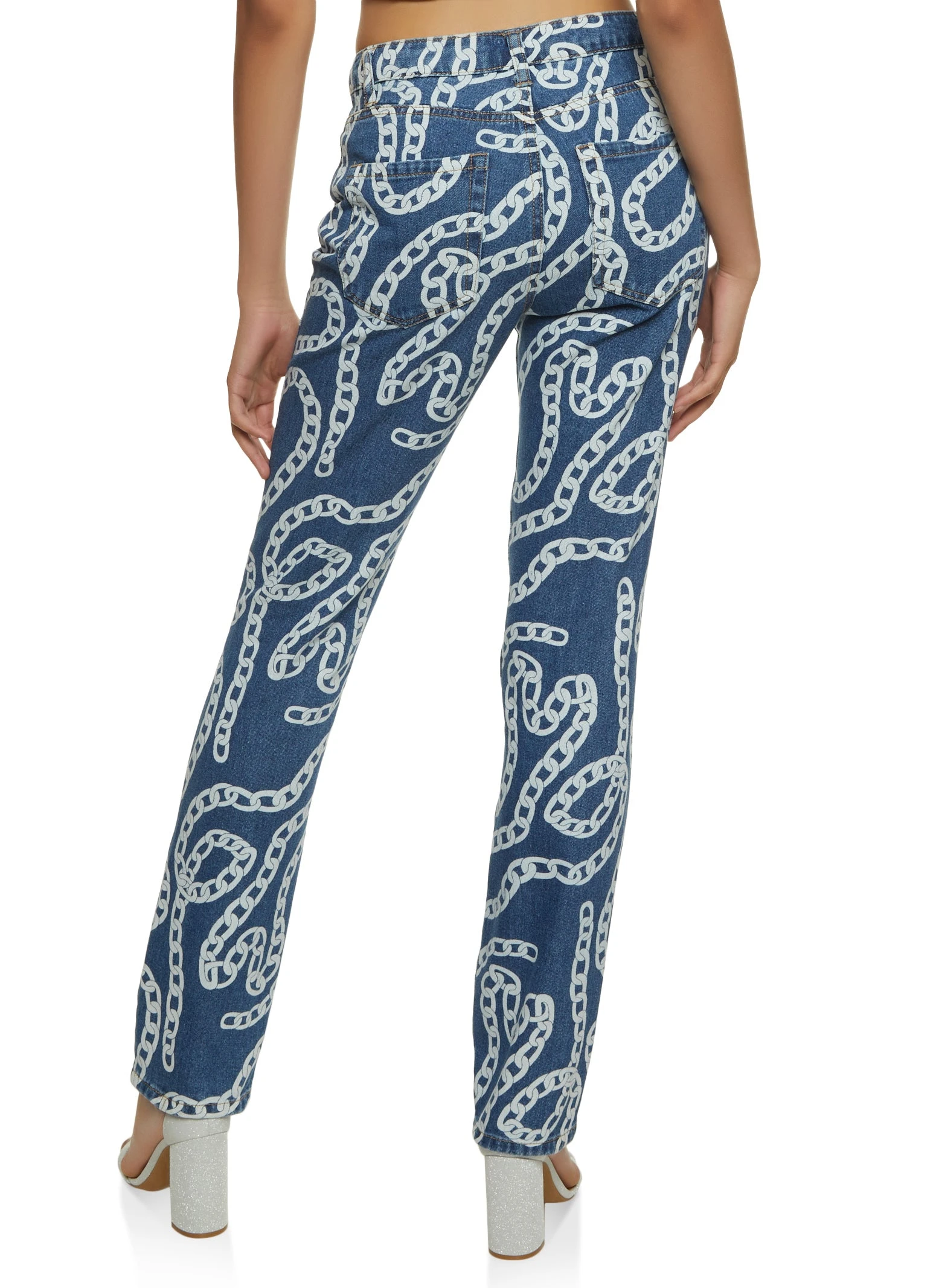 Distressed Chain Print Straight Jeans – LIGHT WASH
