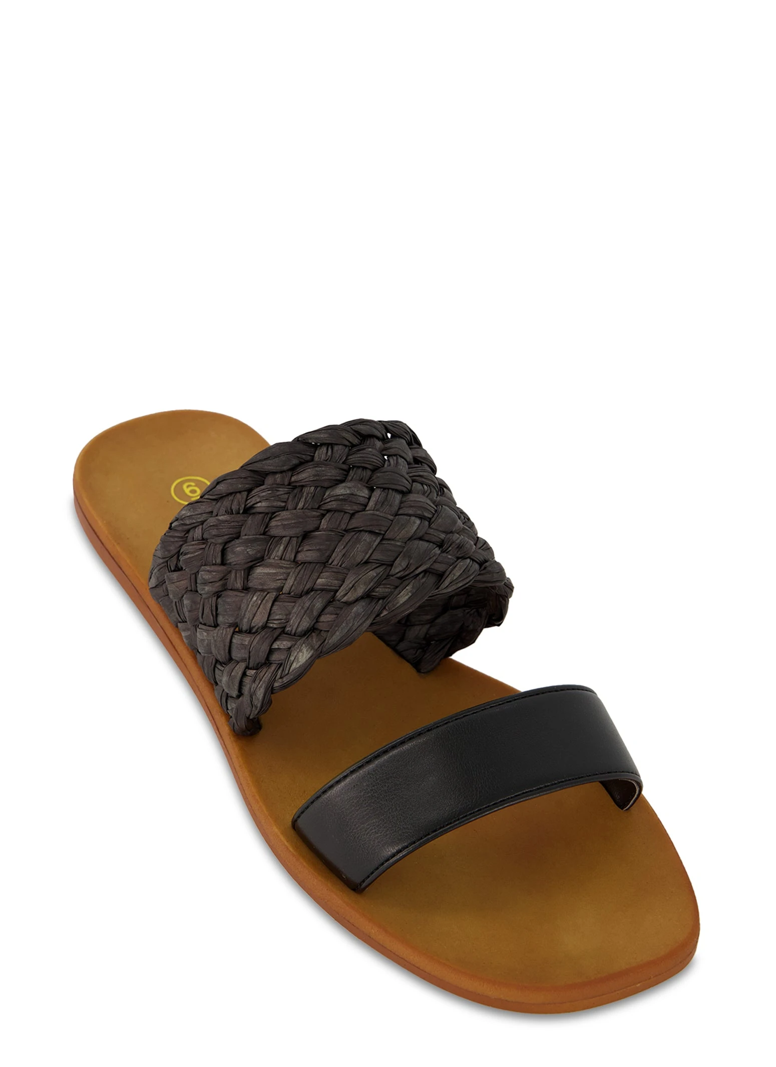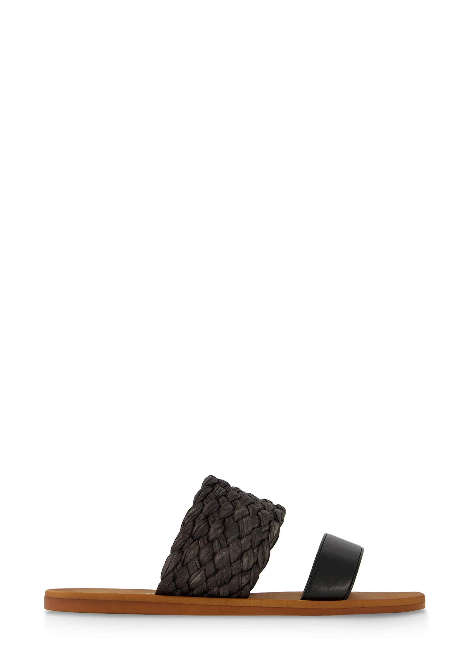 Double Band Braided Detail Slide Sandals – BLACK