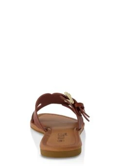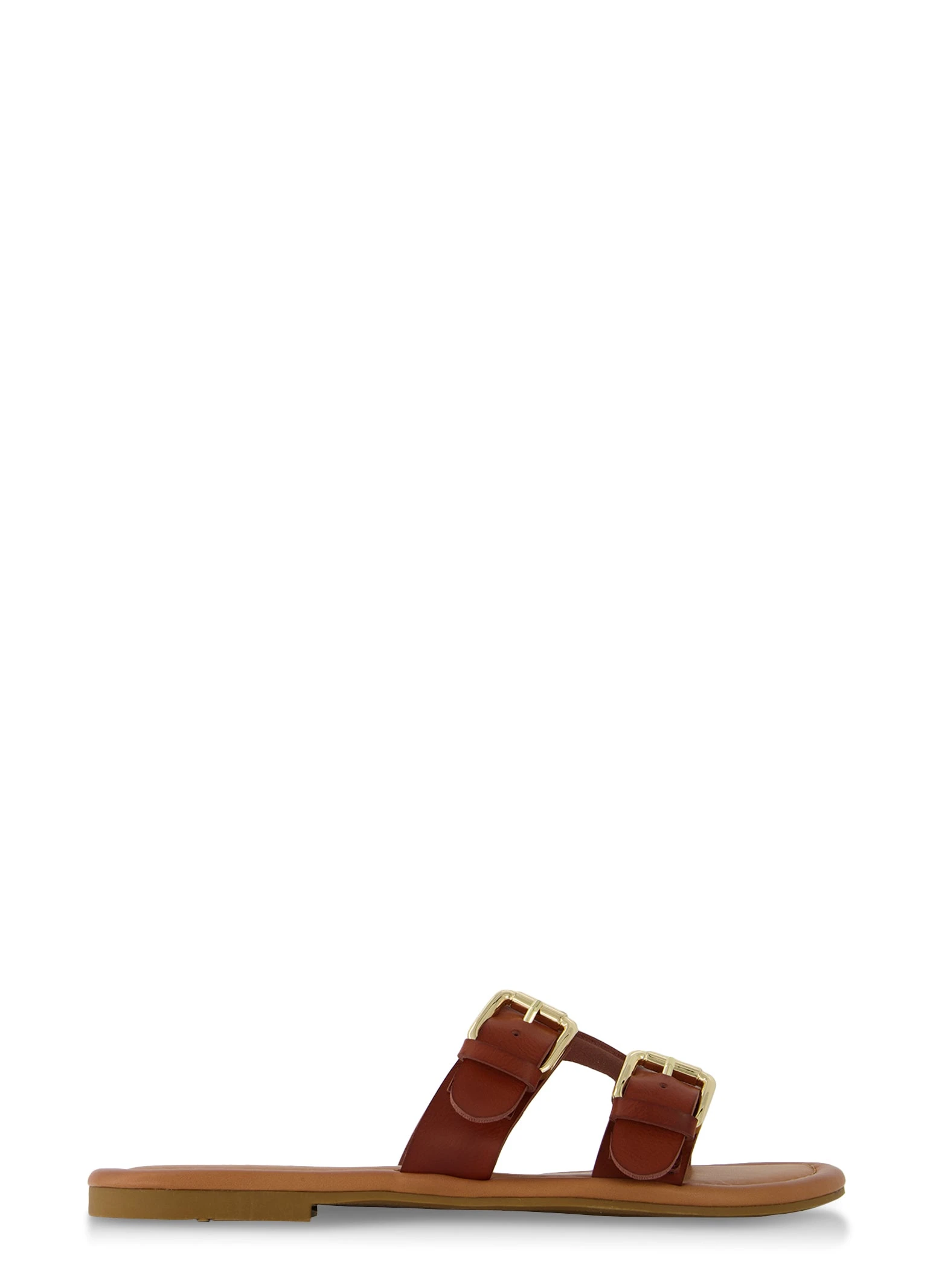 Double Buckle Cut Out Slide Sandals – TAN