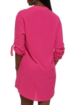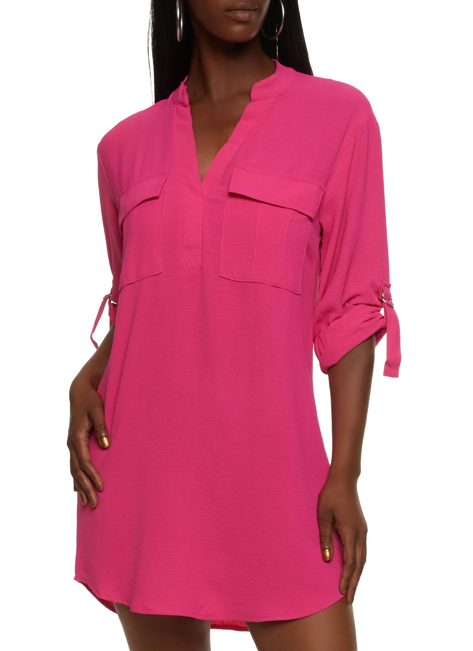 Double Pocket Tabbed Sleeve Shirt Dress – MAGENTA