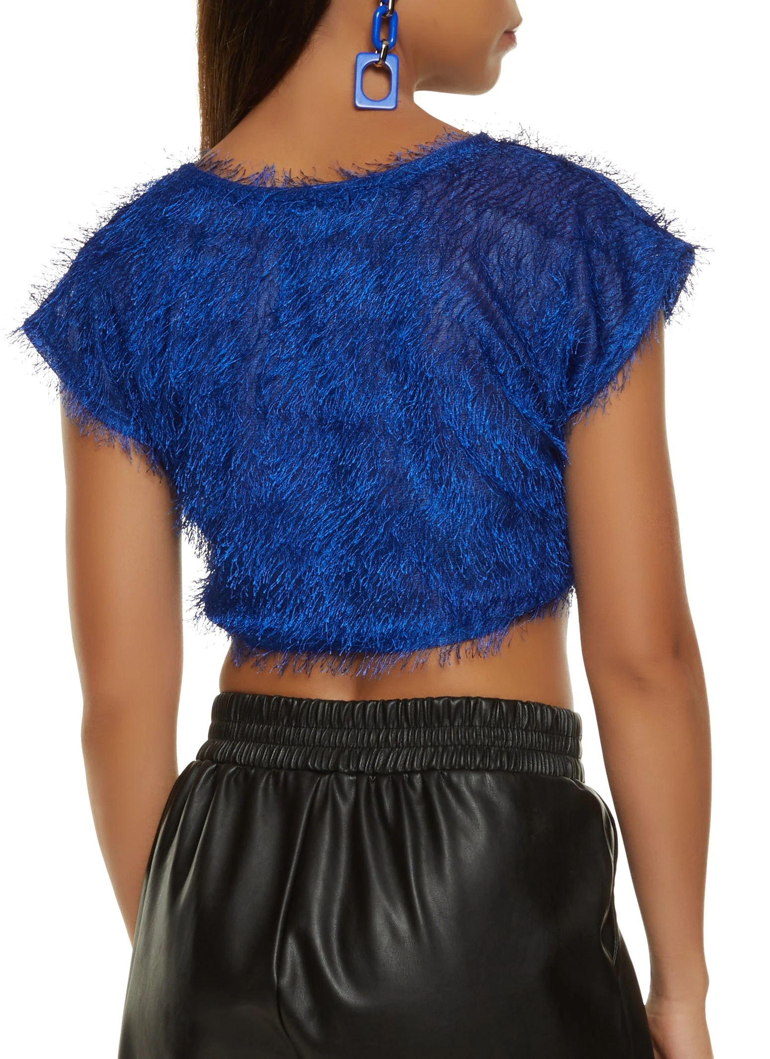 Eyelash Knit Crew Neck Crop Top – ROYAL BLUE