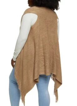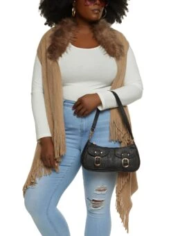 Faux Fur Collar Fringe Knit Vest – TAUPE