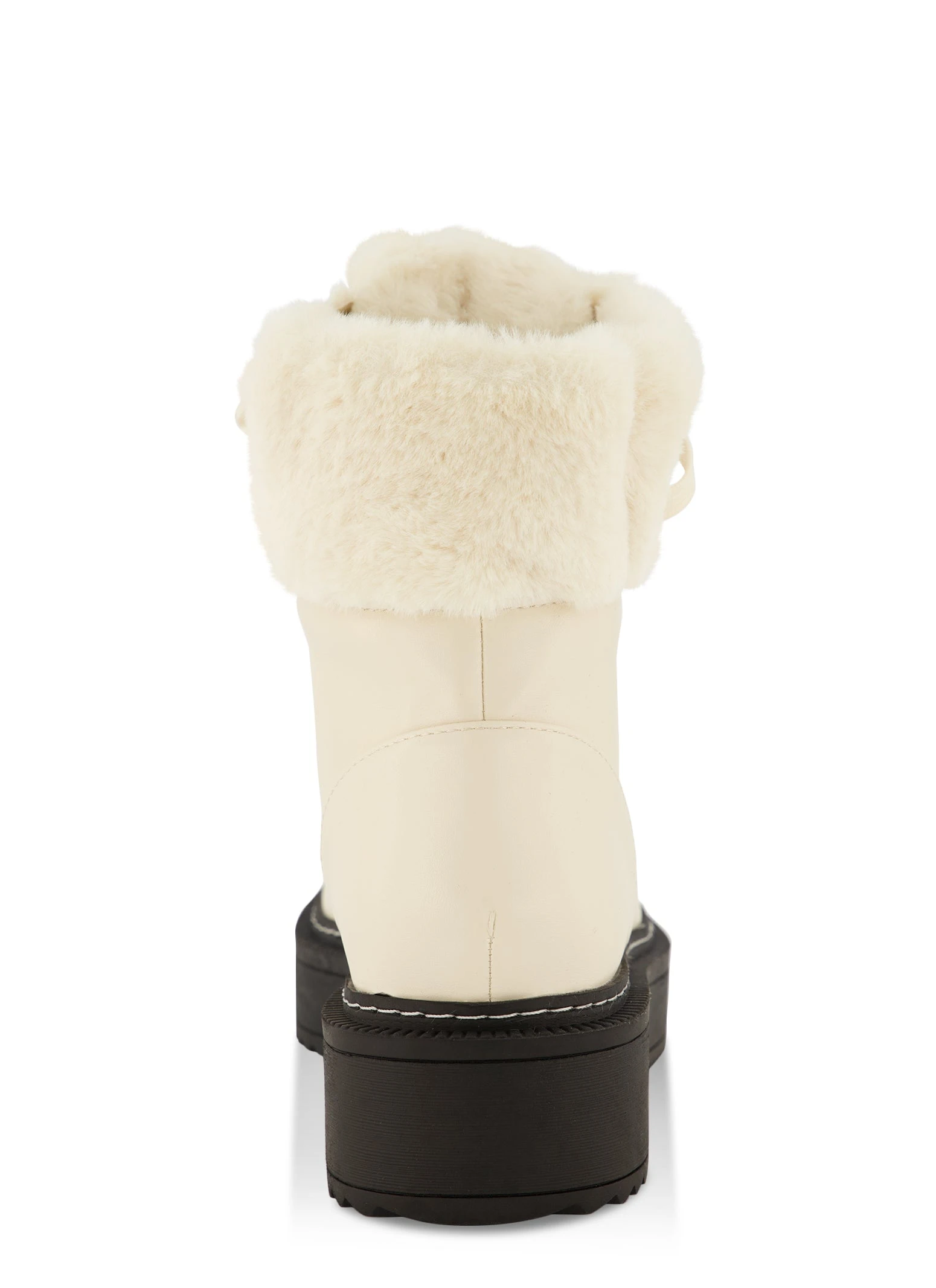 Faux Fur Detail Lace Up Platform Booties – BEIGE