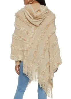 Faux Fur Fringe Hem Asymmetrical Poncho – TAN