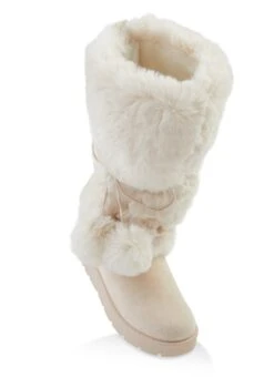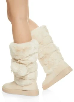 Faux Fur Pom Pom Tall Boots – BEIGE