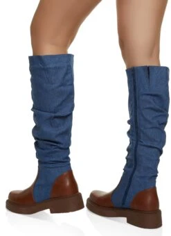 Faux Leather Round Toe Ruched Tall Boots – DENIM