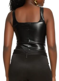 Faux Leather Square Neck Tank Bodysuit – BLACK
