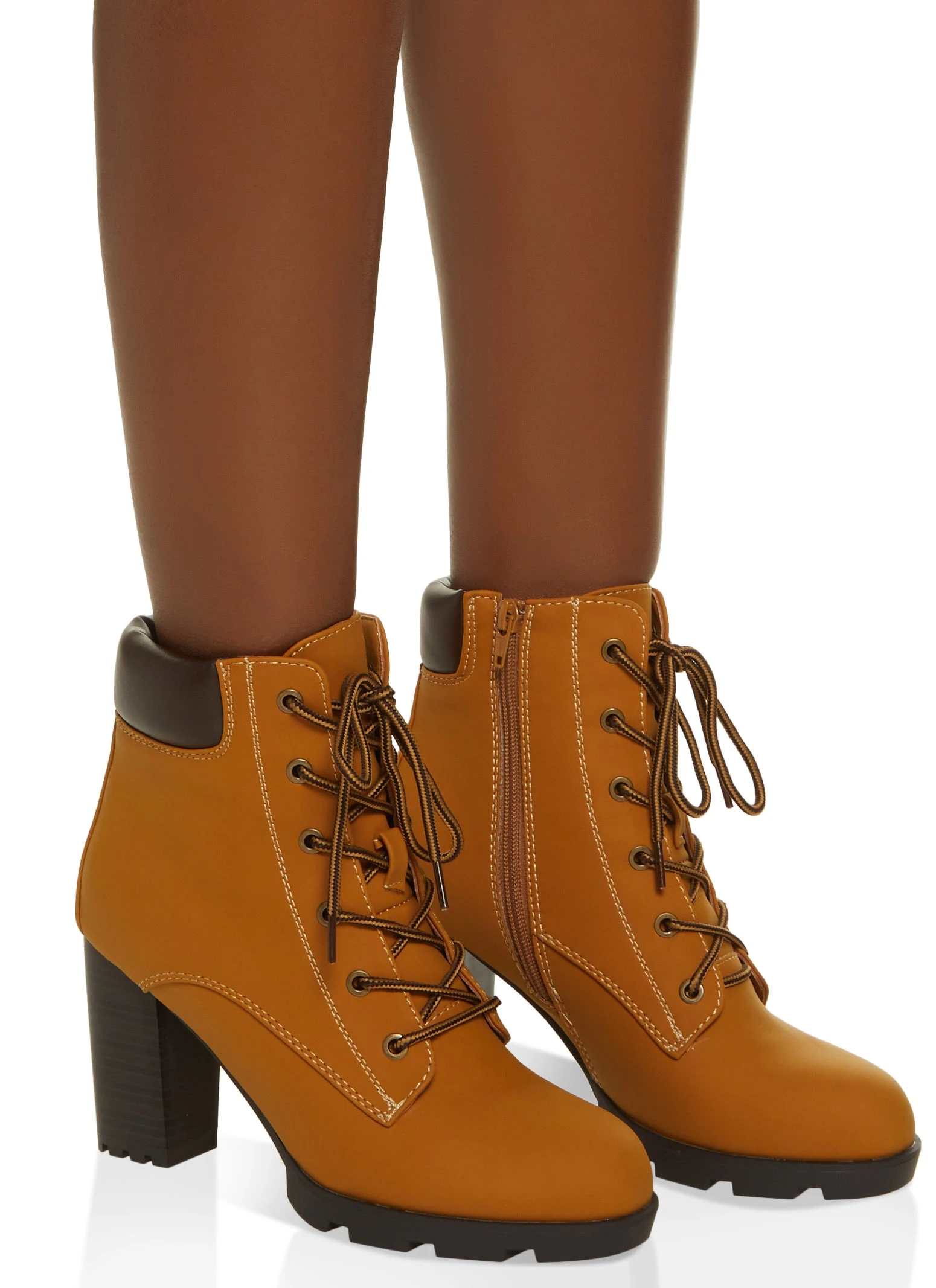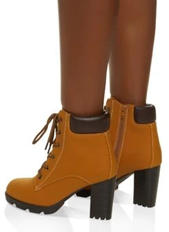 Faux Suede Lace Up Block Heel Booties – TAN