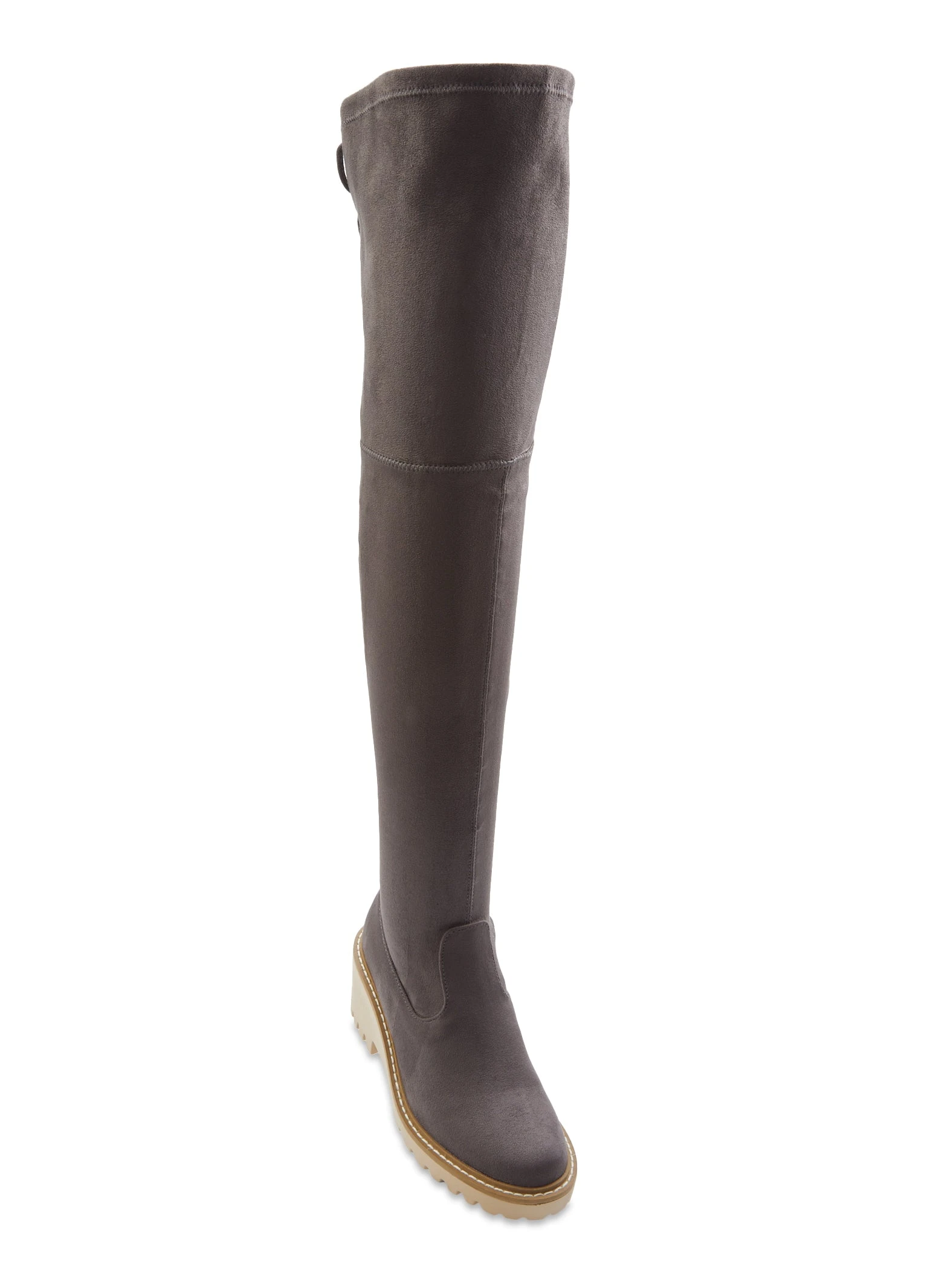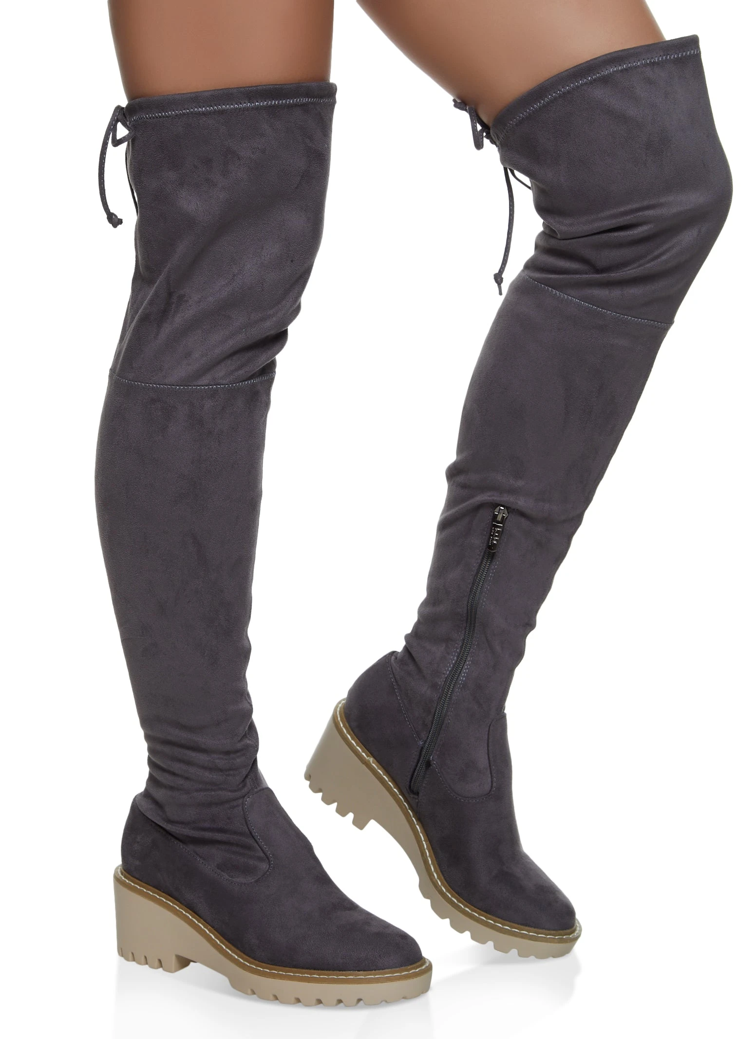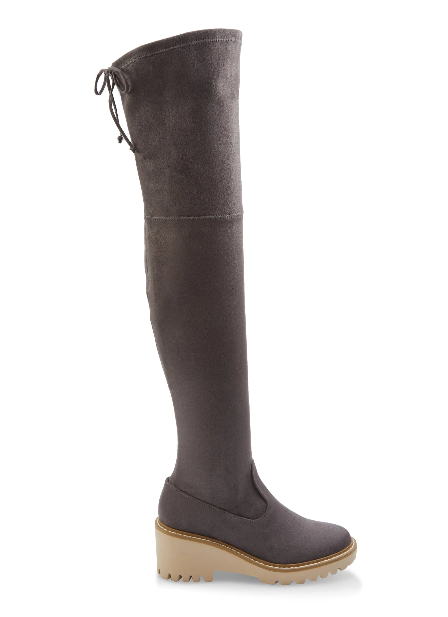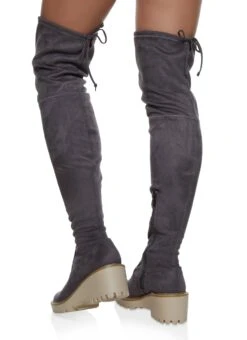 Faux Suede Over The Knee Wedge Boots – GRAY