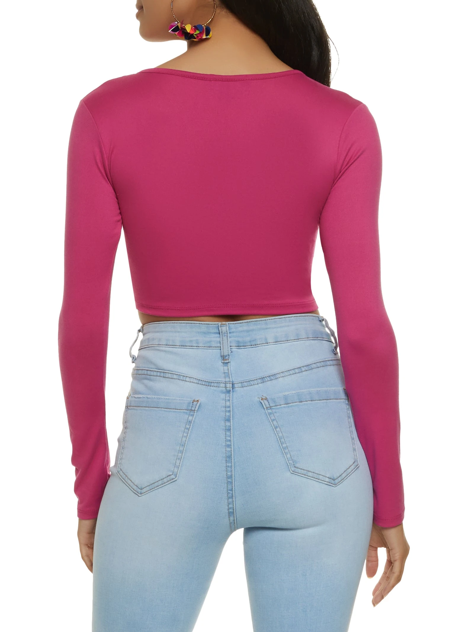 Faux Wrap Ruched Detail Crop Top – MAGENTA