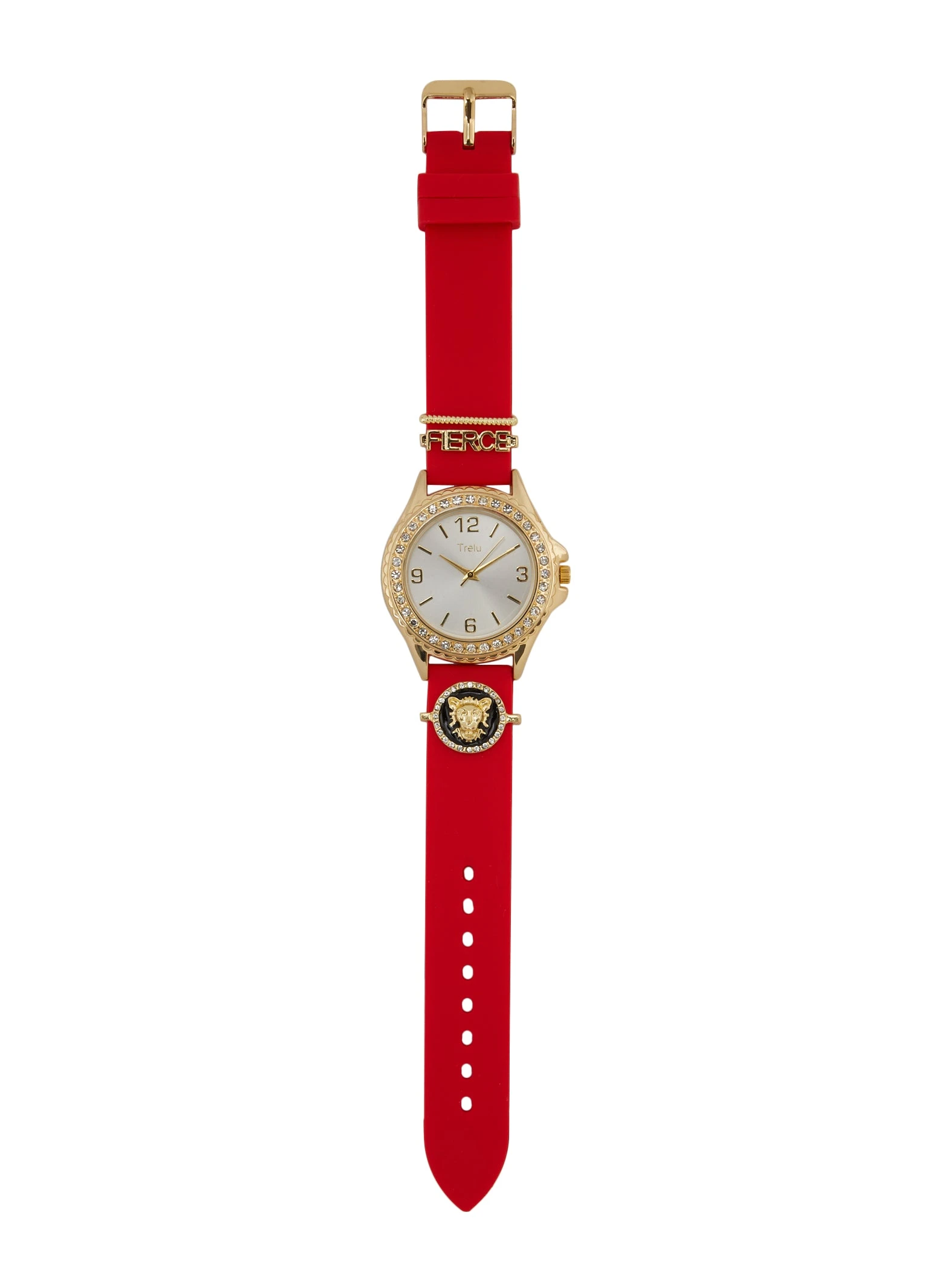 Fierce Charm Rhinestone Trim Watch – RED