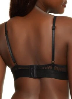 Fishnet Detail Lace Plunge Bra – BLACK