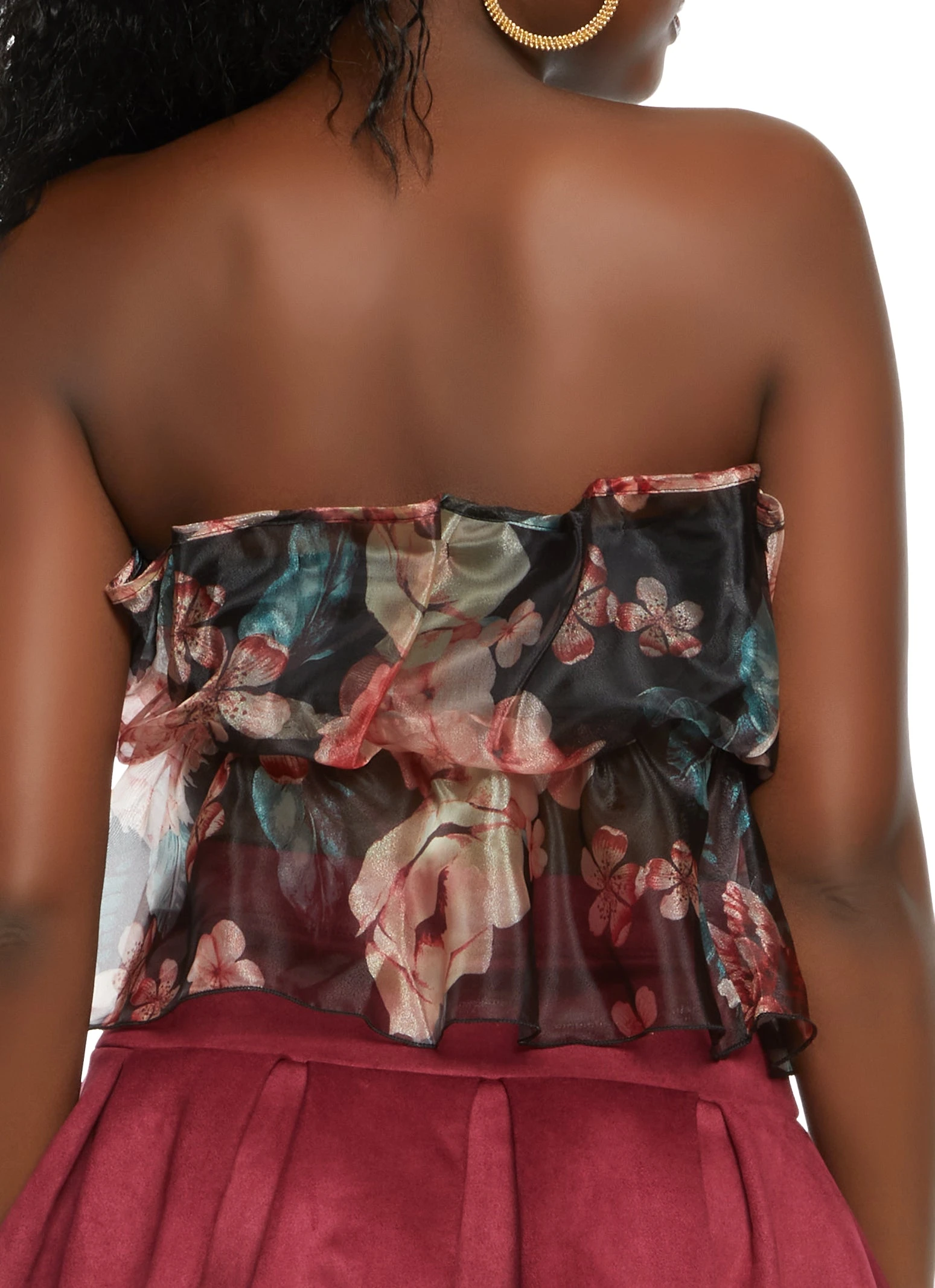 Floral Print Ruffled Organza Sleeveless Top – BLACK
