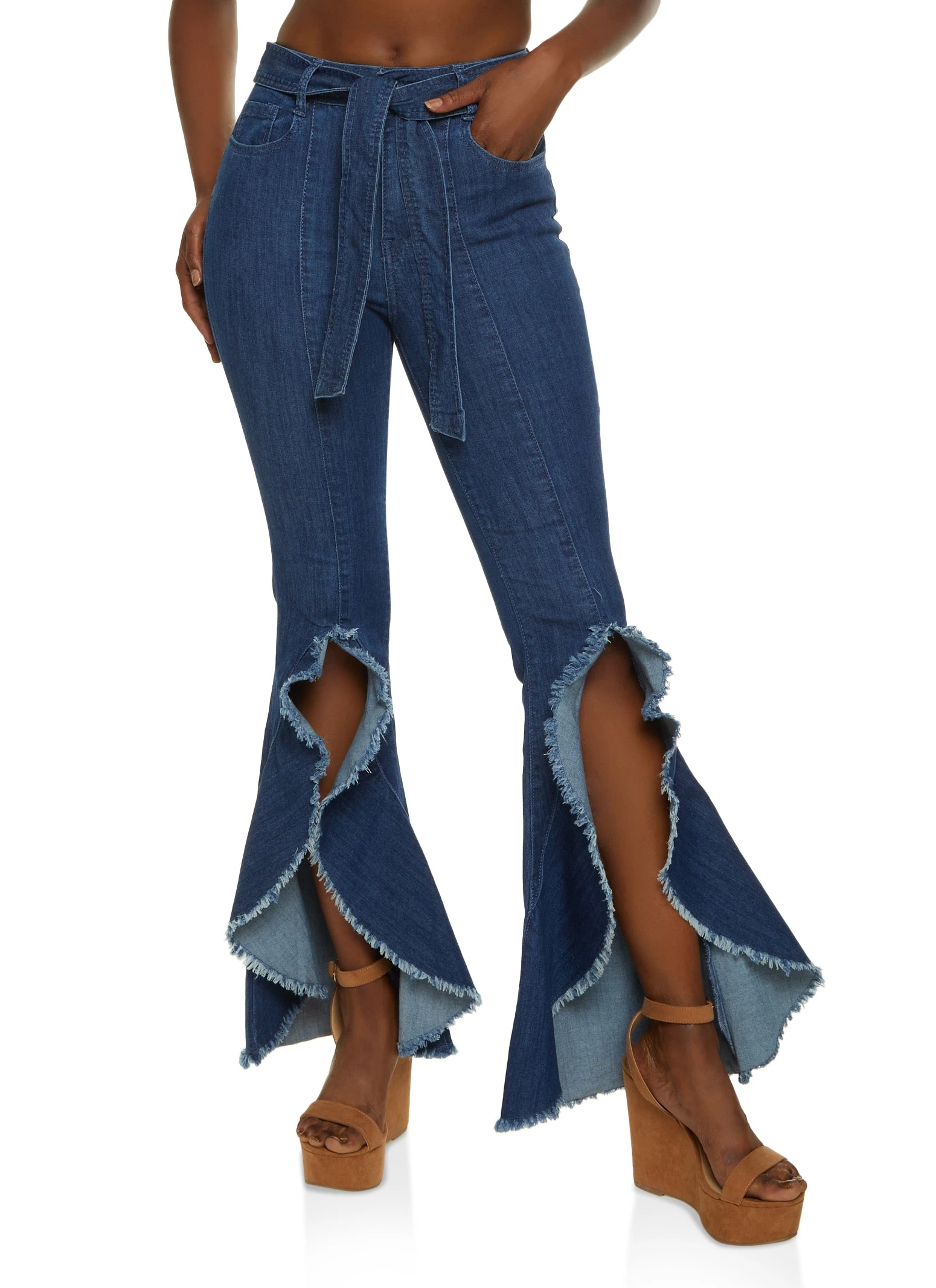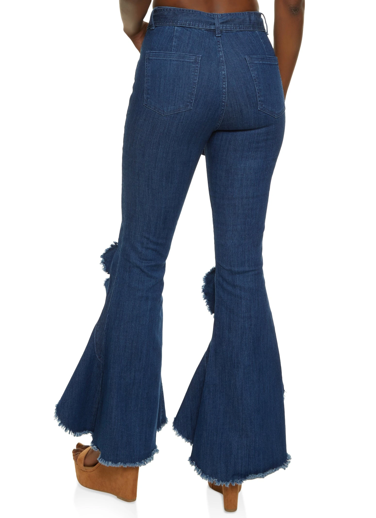 Frayed Split Seam Flare Jeans – DARK WASH