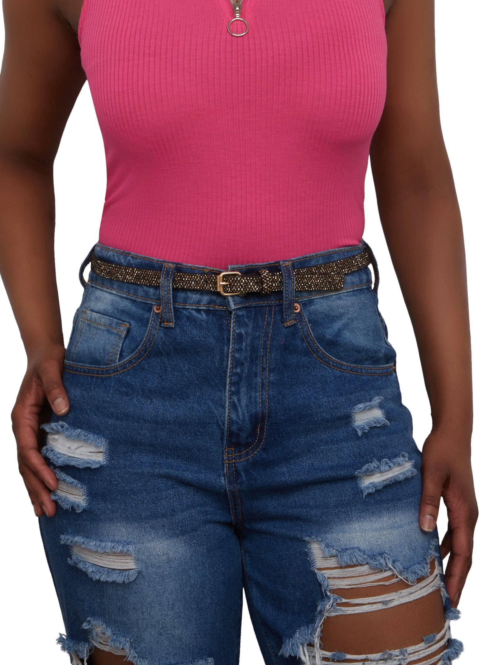 Glitter Metallic Buckle Belts – 3 Pack – BLACK