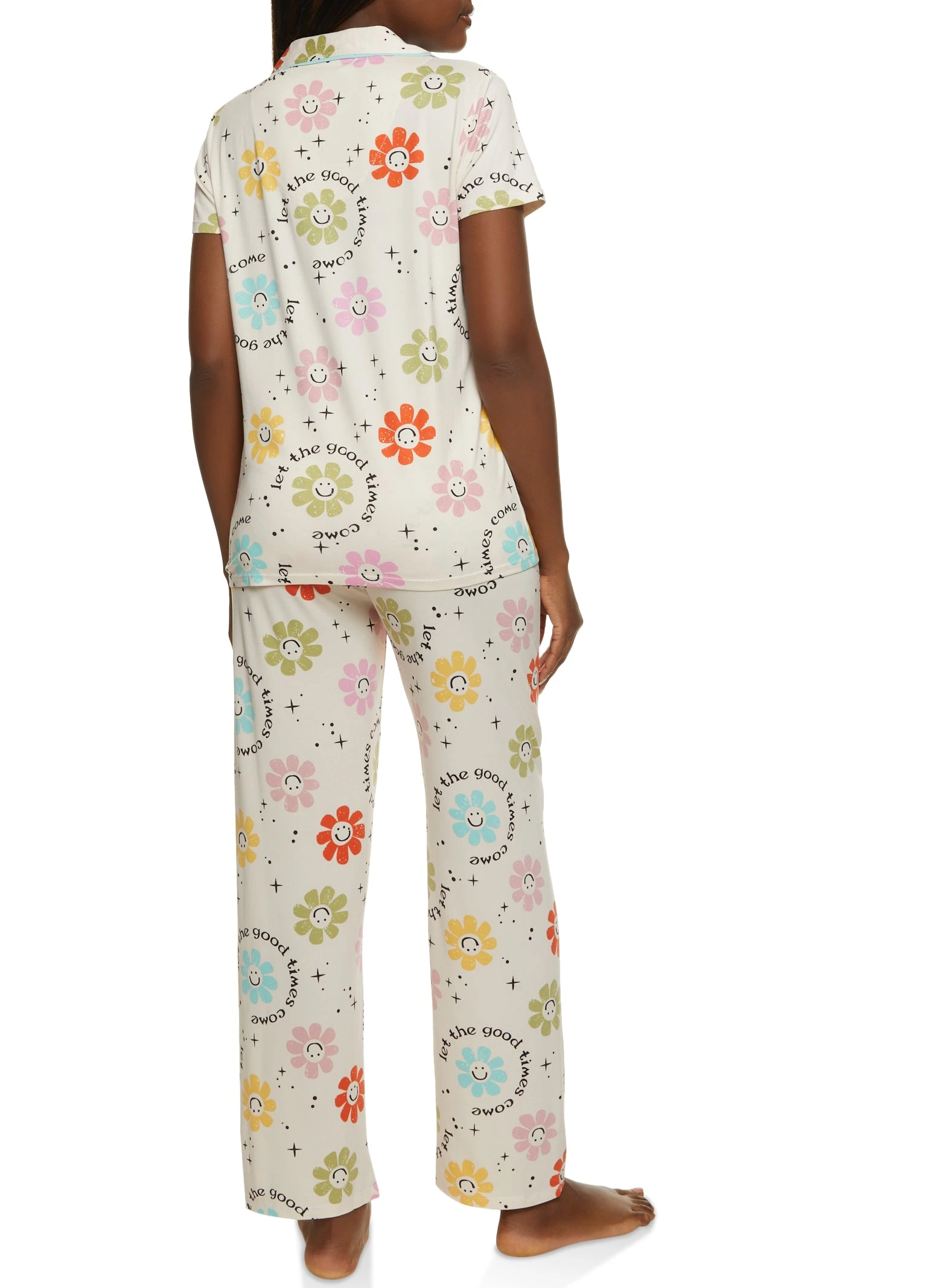 Graphic Print Notch Collar Pajama Top and Pants – BLUSH