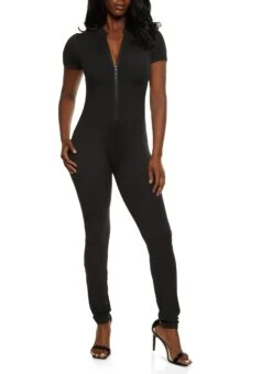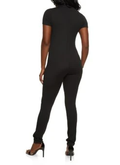 Half Zip Mock Neck Short Sleeve Catsuit – BLACK