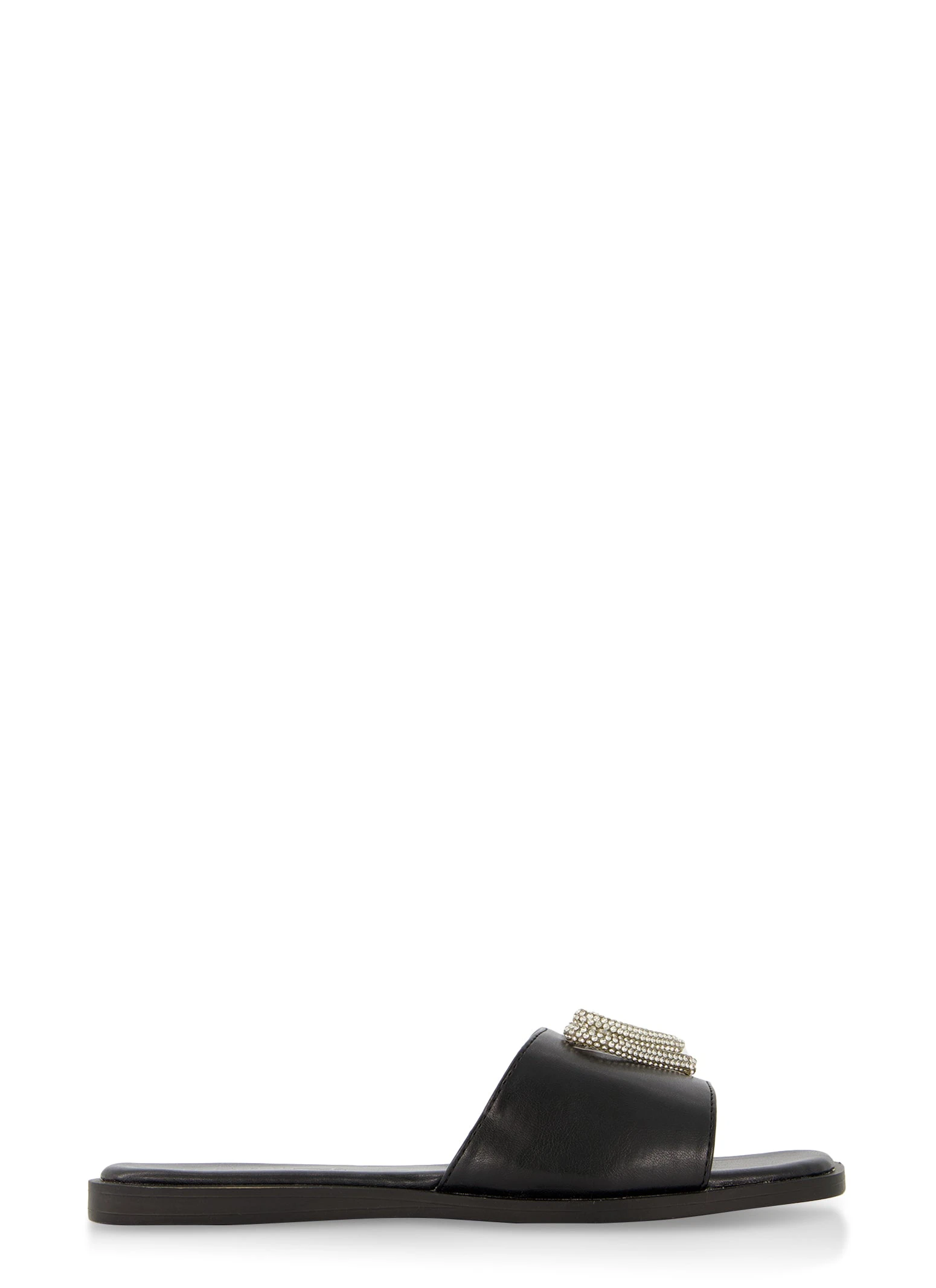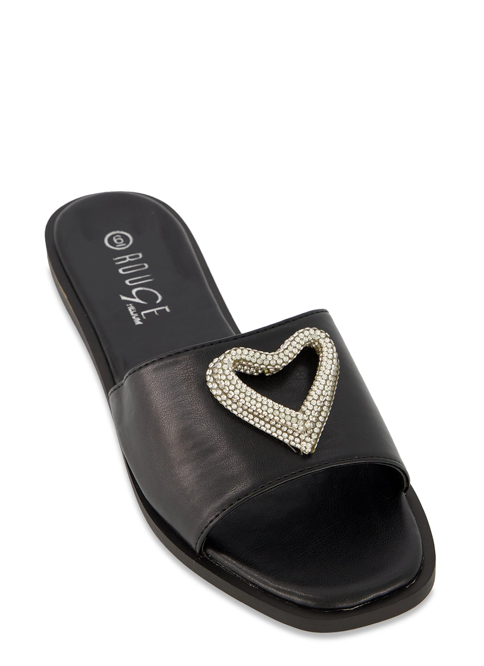 Heart Rhinestone Pendant Slide Sandals – BLACK
